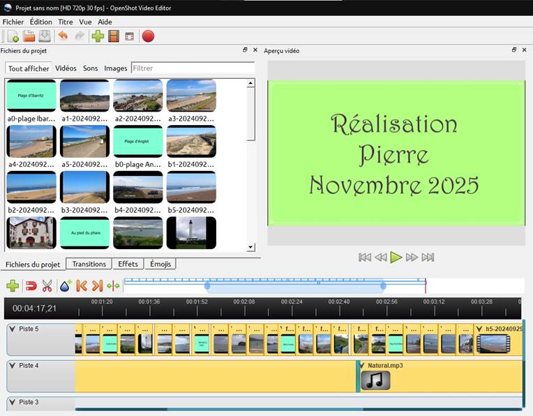 Ci-dessous une réalisation d’un montage vidéo à l’aide de l’application « OpenShot Video Editor ».